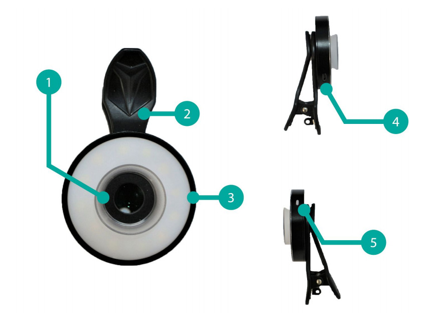 - If the ring light illumination appears dim after continuous usage, recharge the ring light using the provided micro-USB cable.