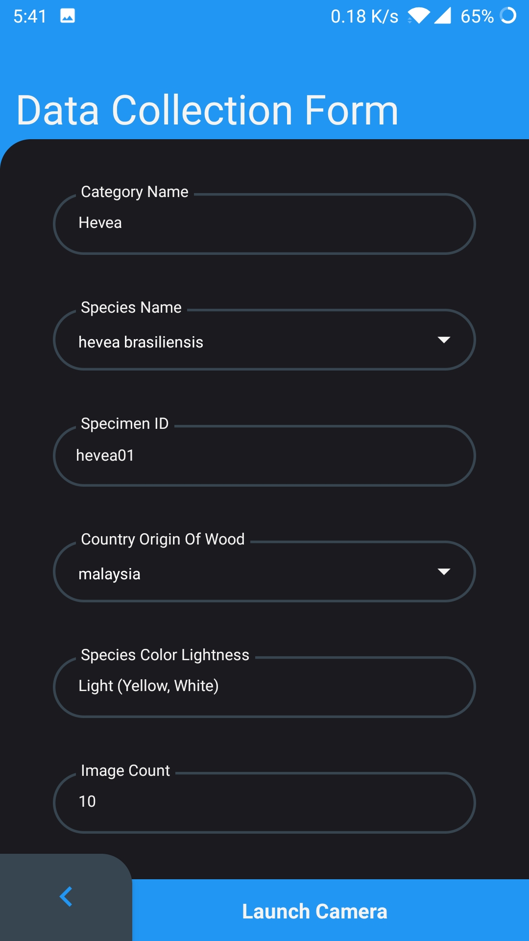- g) Once all the information is filled in, begin the data collection process by tapping the "Launch Camera" button.