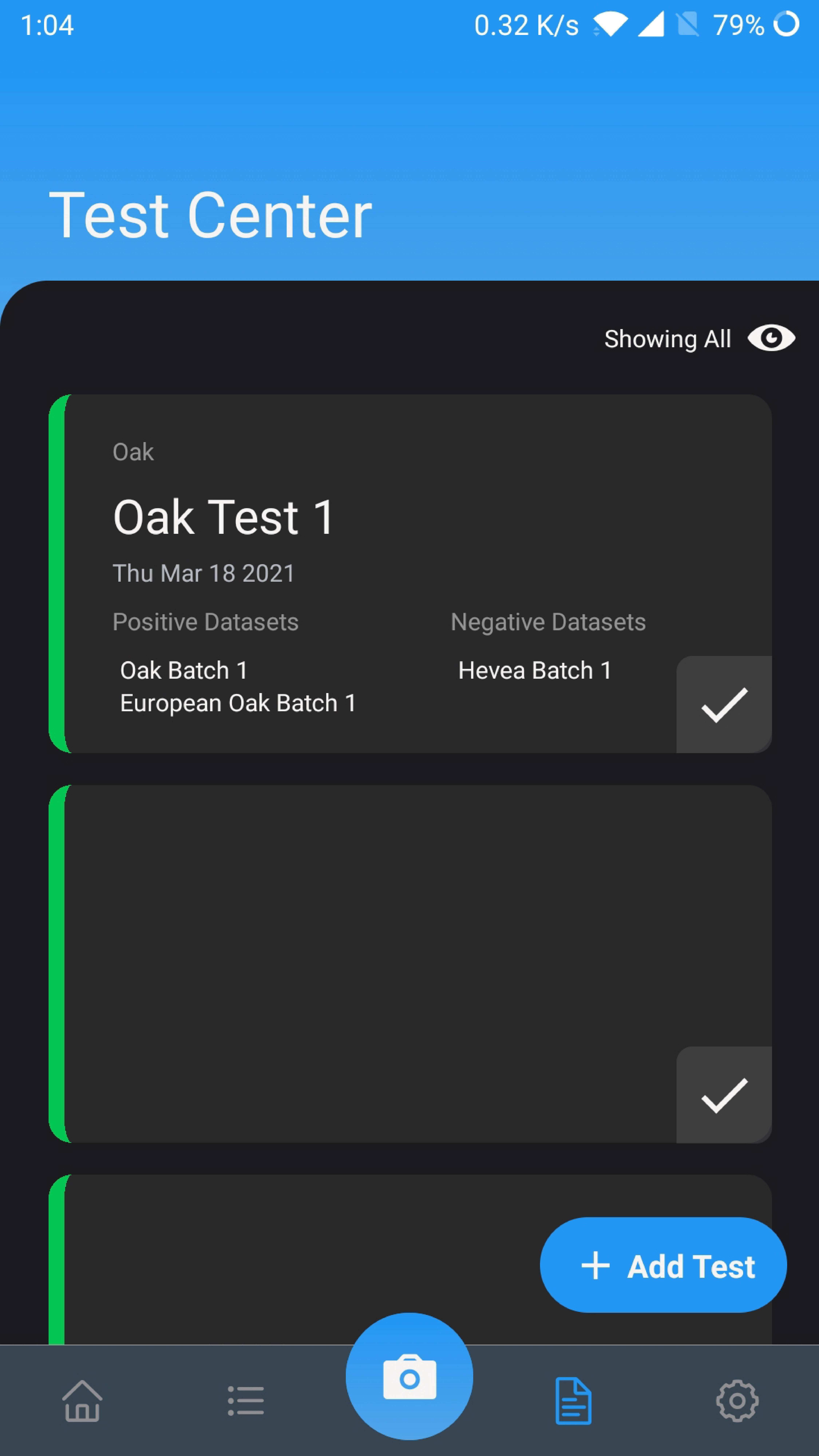 Once the test is created, it will be displayed in the Test page. Tap on it to proceed with further actions.